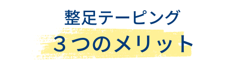 「整足テーピング」でアーチを補正し、足指を補正することで、本来足がもっているクッション機能を蘇らせ、過剰なねじれも補正します。