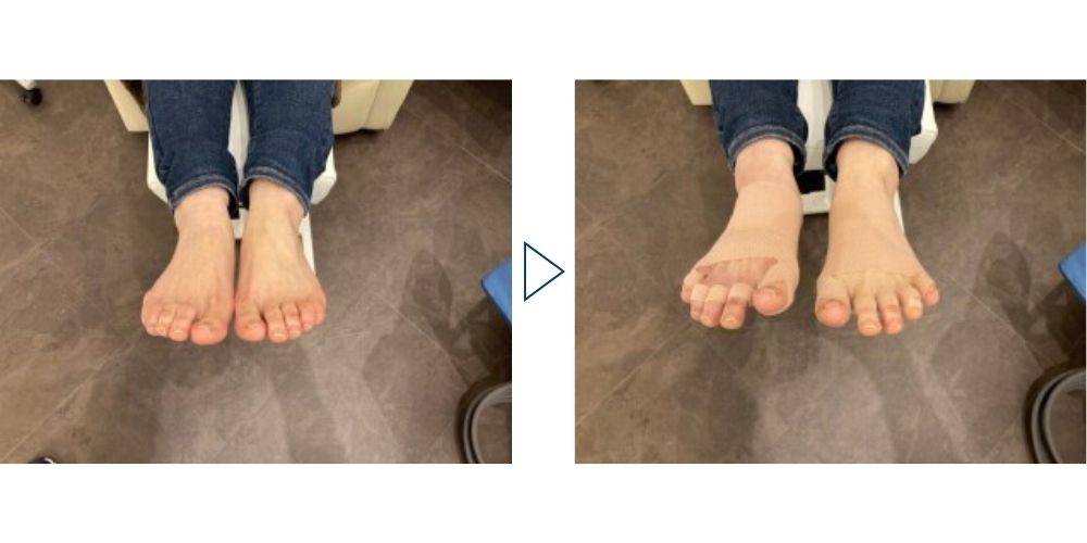 テーピング施術後は、左右の足指が地面にしっかりと着くようになりました。