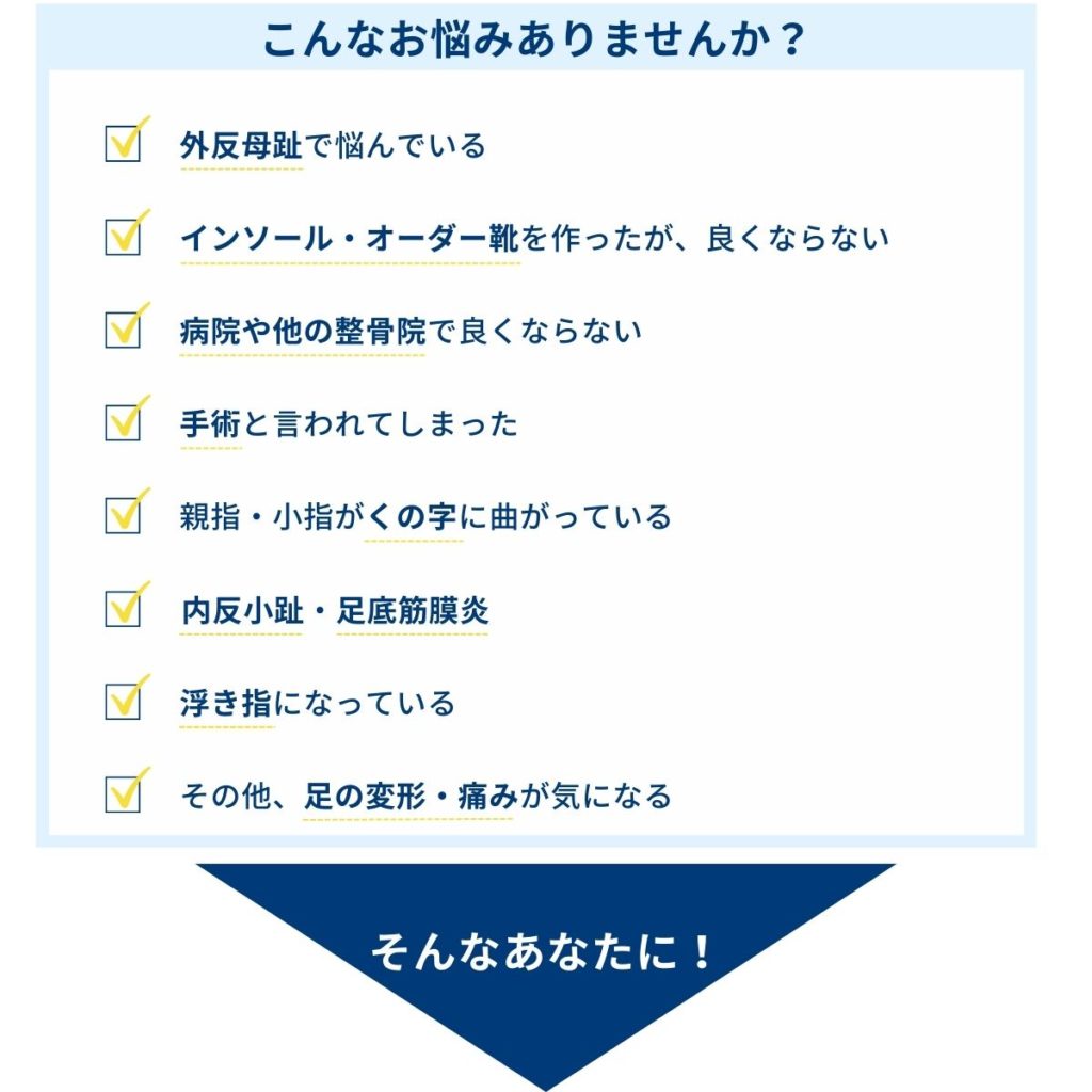 「外反母趾や浮き指など足の専門院として 実績があり、どこに相談したら良いかわから